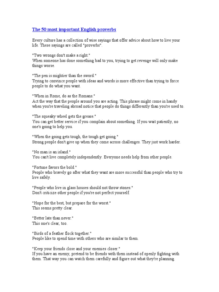 50 Important Proverbs