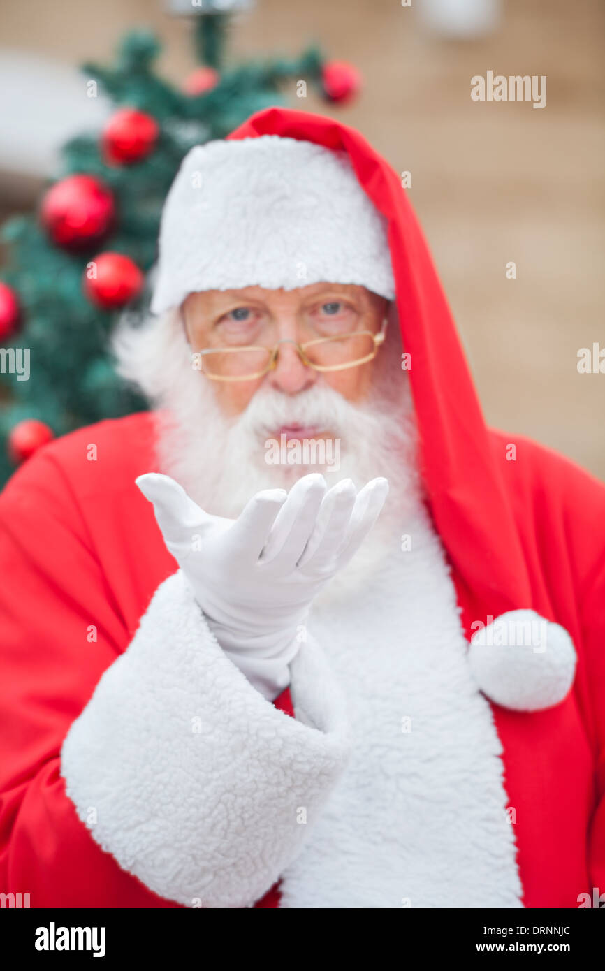 Photo Of Santa Claus Blowing Snow And Looking At It Stock Photo Alamy - Vintage christmas blow mold santa decoration santa light, santa decoration this vintage beistle santa claus has a round honeycomb tissue body and lithographed cardboard head, arms, and hands.