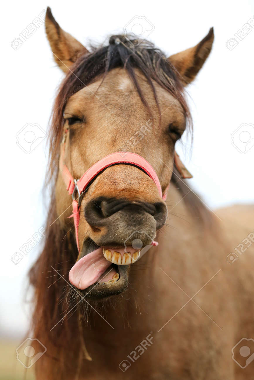 Funny Pictures Of Horses Teeth Funny Pictures Of Horses Teeth : Shot directly from the front this picture shows the face of a horse with his toothy smile visible.